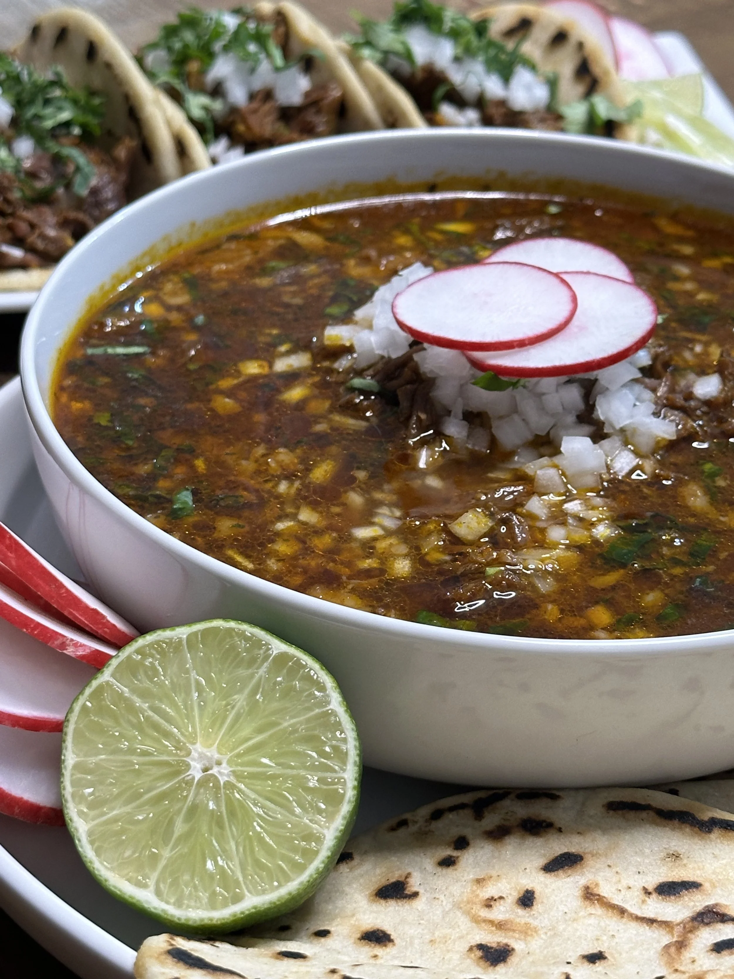 Birria can be enjoyed as a stew served over rice and topped with onions, cilantro and a squeeze of fresh lime juice or as tacos, quesadillas, burritos or a delicious soup. Any way you like it, it will always be delicious! Birria is usually cooked for special occasions and it’s traditionally slow cooked (braised) and made out of goat, lamb or beef in a rich and flavorful broth, or consomé. We make it easier for you with our Spice Bombs.